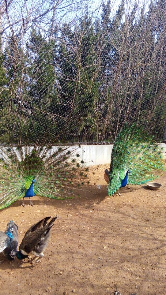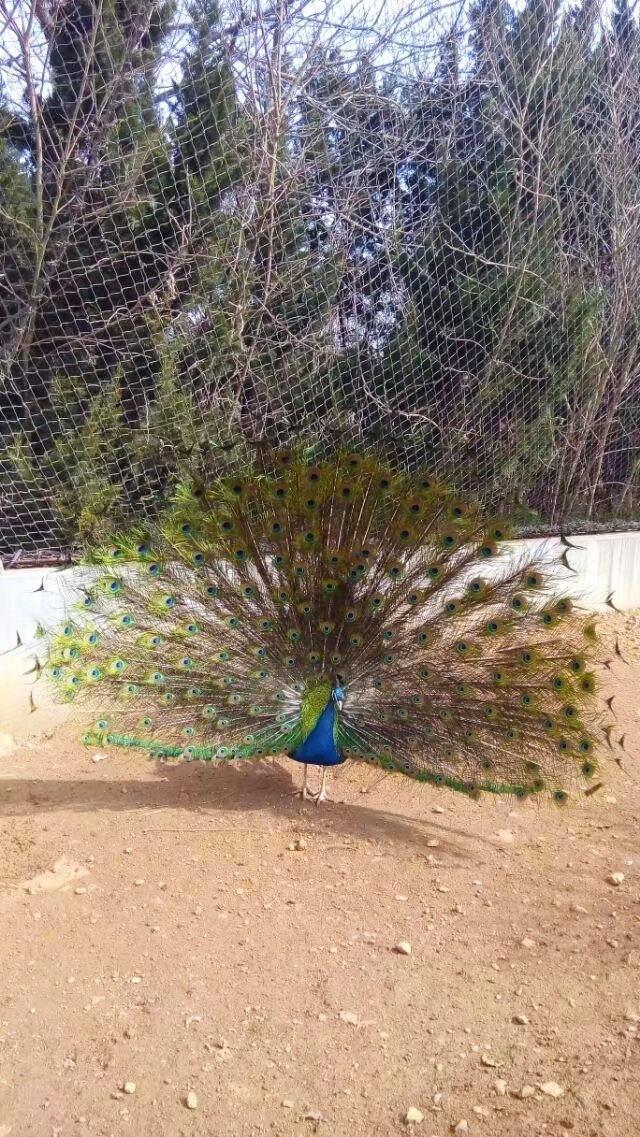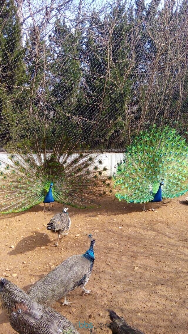 就在我还沉浸在这只孔雀的惊艳中时,另一只孔雀也跟着开屏了。两只孔雀同时展示着它们的美丽,尾羽上的眼状斑纹仿佛无数双灵动的眼睛,在向世界宣告它们的骄傲。